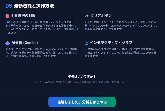 「どこから見ればいいのか分からない」という状態から、“まずは上位銘柄を見る”という明確なスタート地点を提供します。